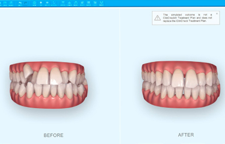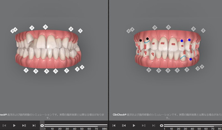 マウスピース矯正はインビザライン社のコンピューターソフトで治療のシュミレーションを行うことができます。